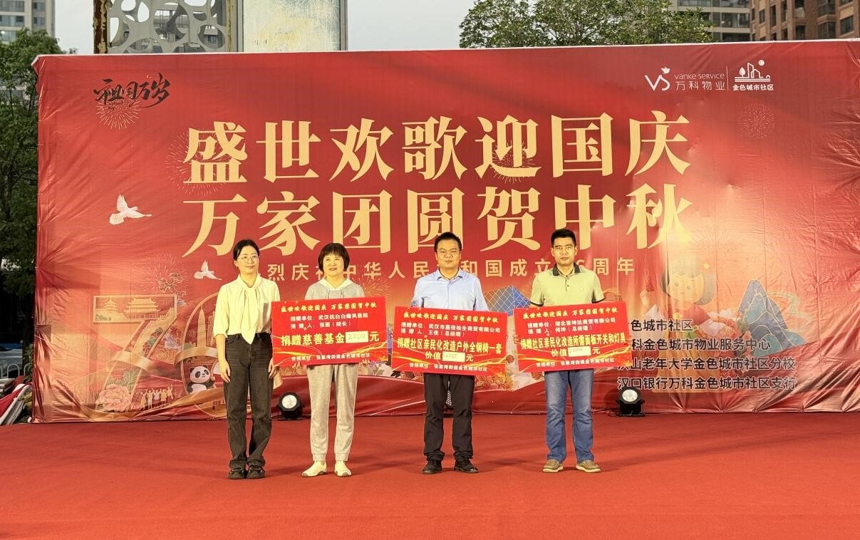 晚会特别设置爱心捐赠环节,湖北亚坤达商贸有限公司、武汉市嘉佳松生商贸有限公司、武汉抗白白癜风医院分别捐赠社区亲民改造所需的灯具、休闲椅等物资,并向社区慈善基金注入善款。此举体现社会各界对社区建设的支持与担当,为晚会增添温情,助力社区共建共享。
