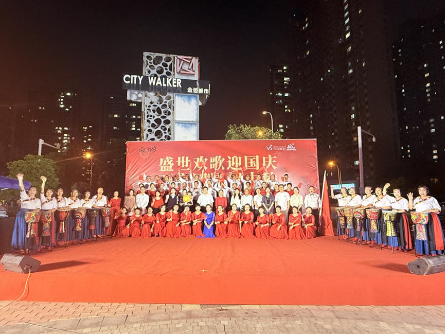 晚会最后以合唱串烧《没有共产党就没有新中国》《歌唱祖国》收尾,激昂歌声中,居民挥舞国旗表达对祖国的热爱与祝福,将现场氛围推向高潮。