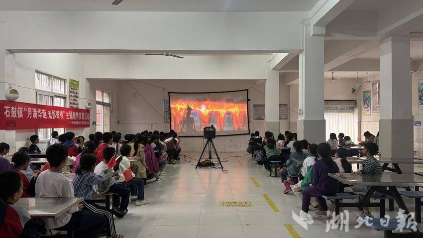 湖北日报客户端讯(通讯员 黄敏)金秋送爽,丹桂飘香,在国庆与中秋双节来临之际,石鼓镇新时代文明实践所邀请市电影放映公司,在镇小学内为学生们带来了一场沉浸式的“光影思政课”,用生动影像点燃青少年们的家国情怀,让红色基因与传统美德在双节氛围中浸润童心。