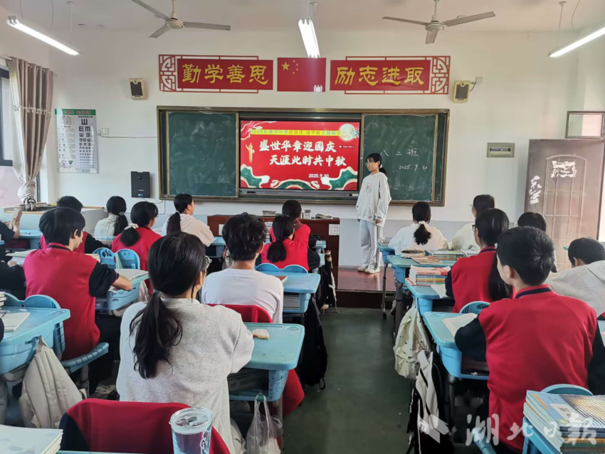 湖北日报客户端讯(通讯员 周政)为庆祝中华人民共和国成立76周年,迎接中秋佳节,9月30日,丹江口市浪河中学以“盛世华章迎国庆 天涯此时共中秋”为主题,组织各班级开展主题班会与爱国主题黑板报创作活动,在校园内营造浓厚的节日氛围与家国情怀。