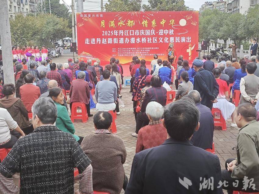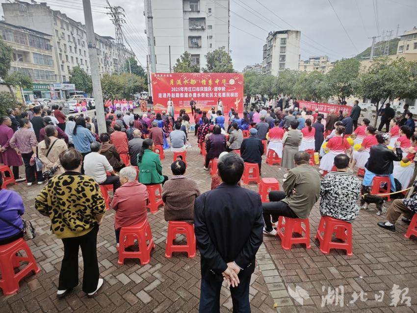 湖北日报客户端讯(通讯员 杨娟 薛敏)9月30日,丹江口市丹赵路街道漫水桥社区张灯结彩,一场主题为“家国同庆·邻里共欢”的迎国庆中秋文艺汇演热闹上演。