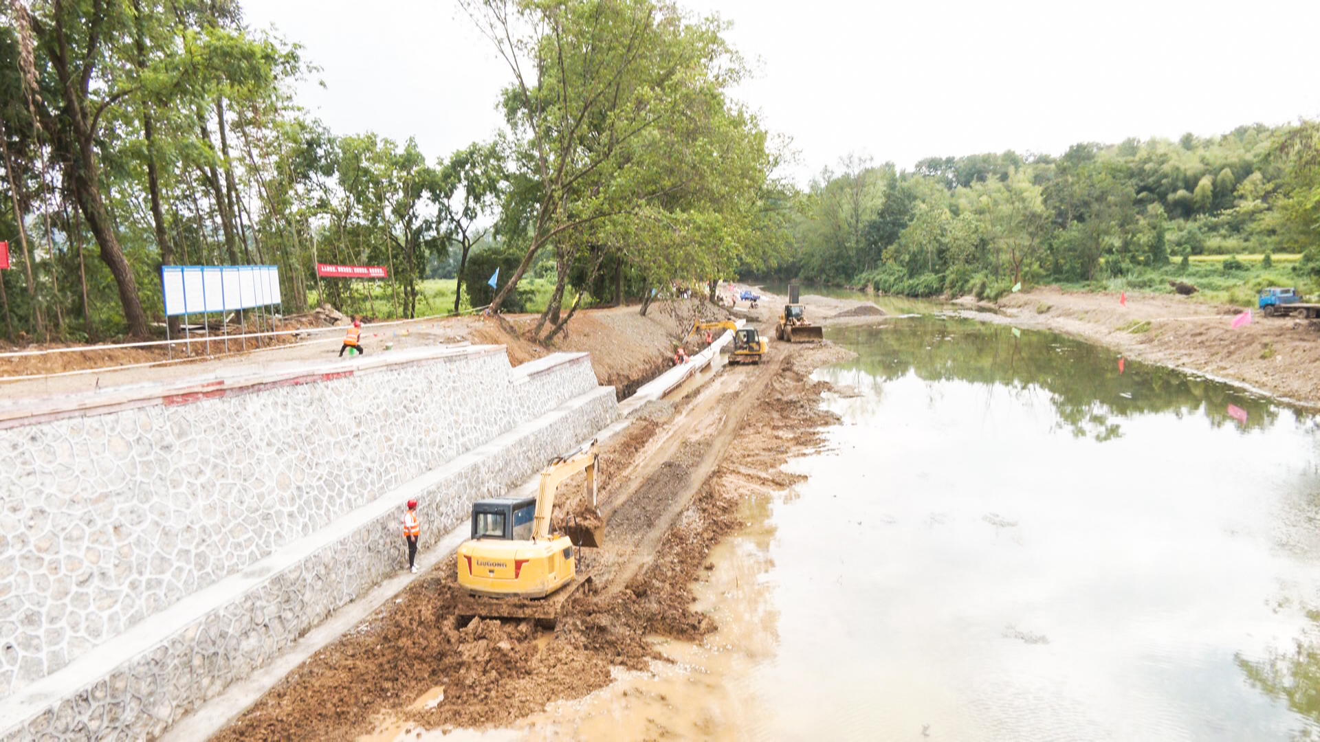 “十一期间我们增加人工和机器,倒排工期,改流水施工为平行施工,增加多个施工断面,确保项目早日建成,落地见效。”崇阳县大市河综合治理工程项目技术负责人代明说。