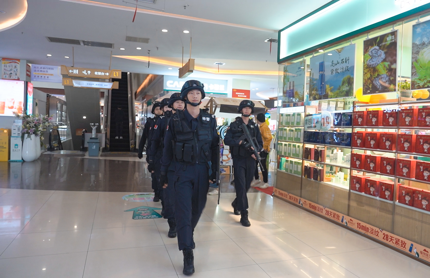 金泰广场作为城区核心商圈,假期客流显著增加。巡逻过程中,巡特警不仅加强重点区域管控,更主动提供便民服务:为游客指引路线、协助搬运货物等暖心举动,成为节日街头一道亮丽的风景线。