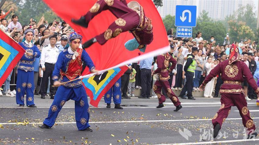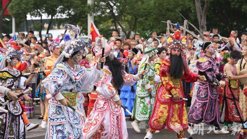 非遗方阵尤为壮观,广东潮汕英歌舞、陕西安塞腰鼓、山南藏戏、新疆《十二木卡姆》等多民族艺术同台演绎。民族服饰秀中,苗族银饰、藏族氆氇、蒙古袍服等首次以动态巡游形式亮相武汉街头,诠释“中华一家亲”的团结图景。
