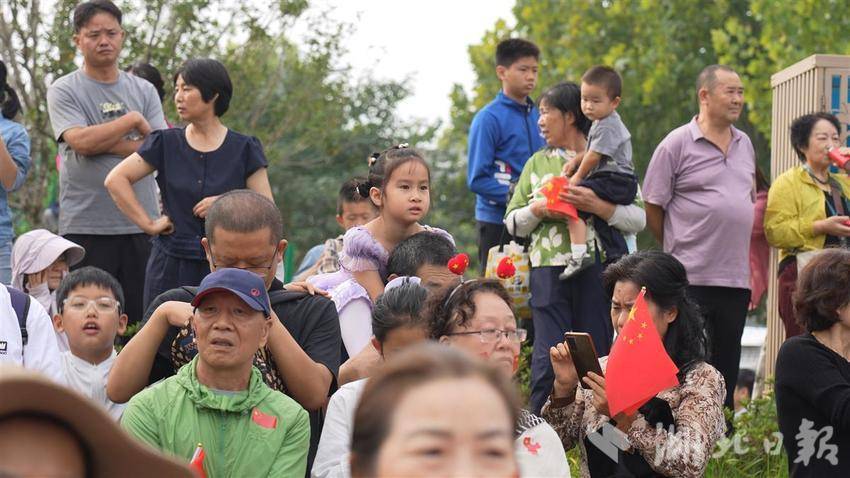上午9时,高新大道两侧早已是人山人海,热闹非凡。孩子们兴奋地骑在家长的肩膀上,手中挥舞着鲜艳的小国旗,如同一片片跃动的红色海洋。年轻人则背着相机,早早地占据了栏杆前的最佳观赏位置,生怕错过任何一个精彩瞬间。