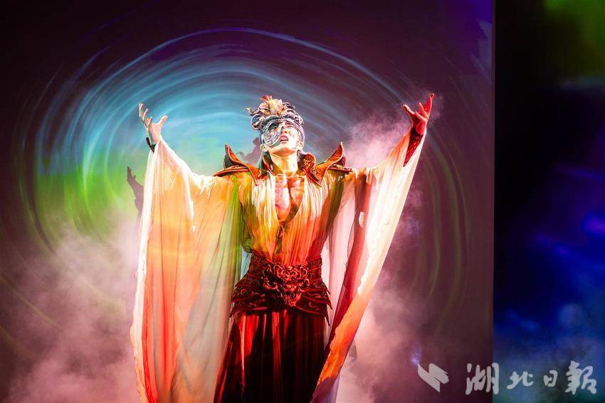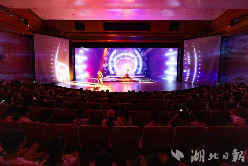 2025年10月1日,“十一”小长假首日,湖北省博物馆上新的沉浸式真人全息舞台剧《遇见·勾践剑》吸引大批市民游客前来观看,场场爆满,座无虚席。该剧把宏大绚丽的沉浸式全息影像与真人表演深度融合,使数字科技与历史脉络交相辉映。在30分钟的演出中,文物不再是静置于展柜中的器物,而是“活”起来、可与观众握手对话的“老朋友”。(湖北日报全媒记者 何宇欣 摄)