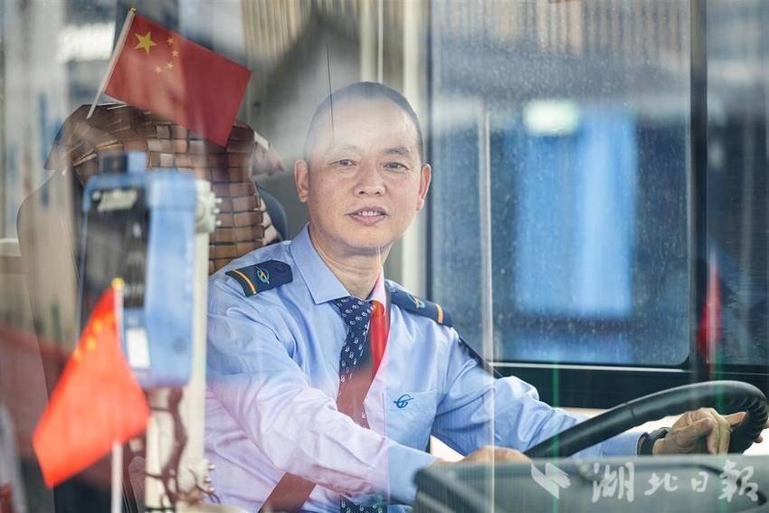 周国庆,1974年10月1日出生,是武汉公交553路的一名驾驶员。周国庆说,在本职岗位上做好工作,用优质的服务保障乘客出行,就是献给祖国最好的礼物和祝福。衷心祝愿祖国繁荣昌盛国泰民安。(湖北日报全媒记者 任勇 通讯员 廖瑜 张萌 摄)