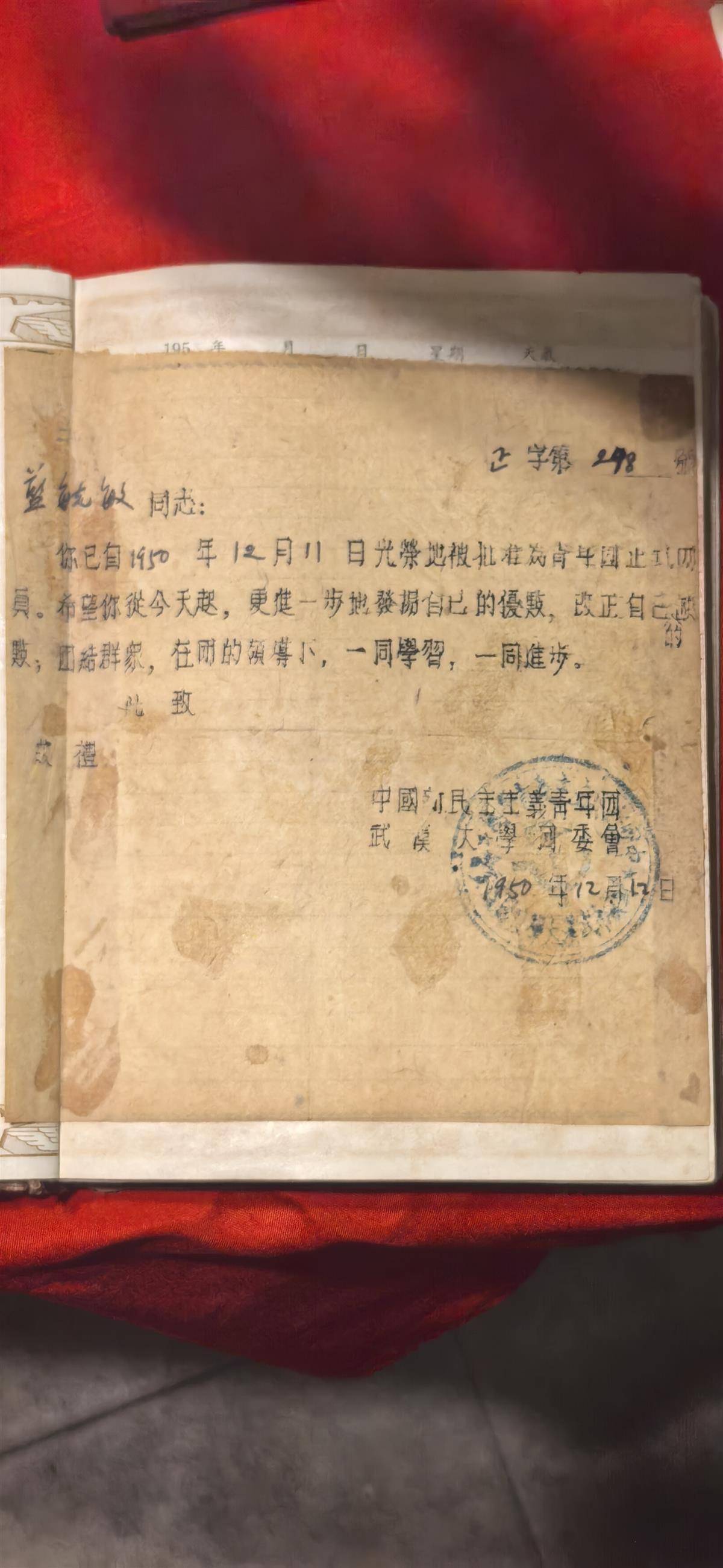 武大的入团证书。