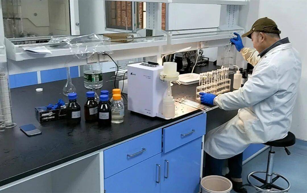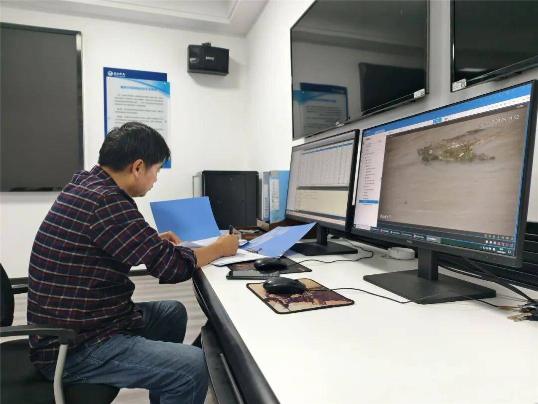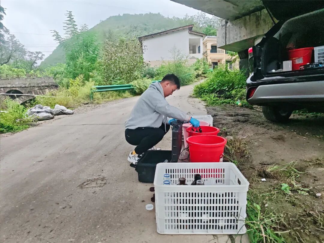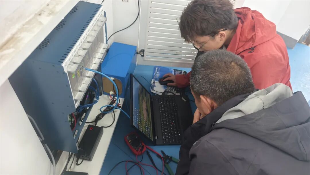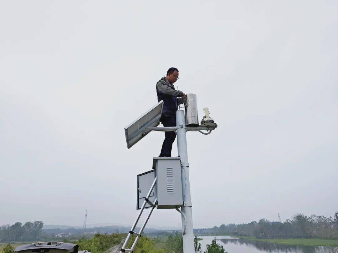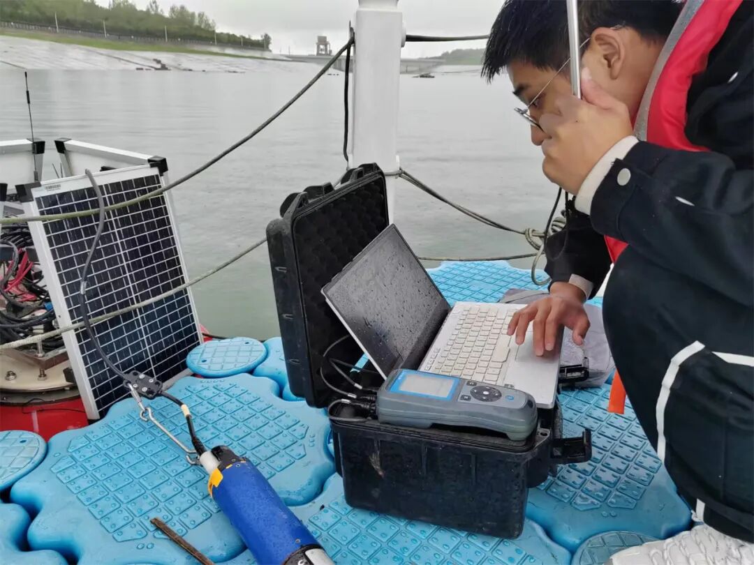 余家湖水文站测验人员维护泥沙在线监测设备。