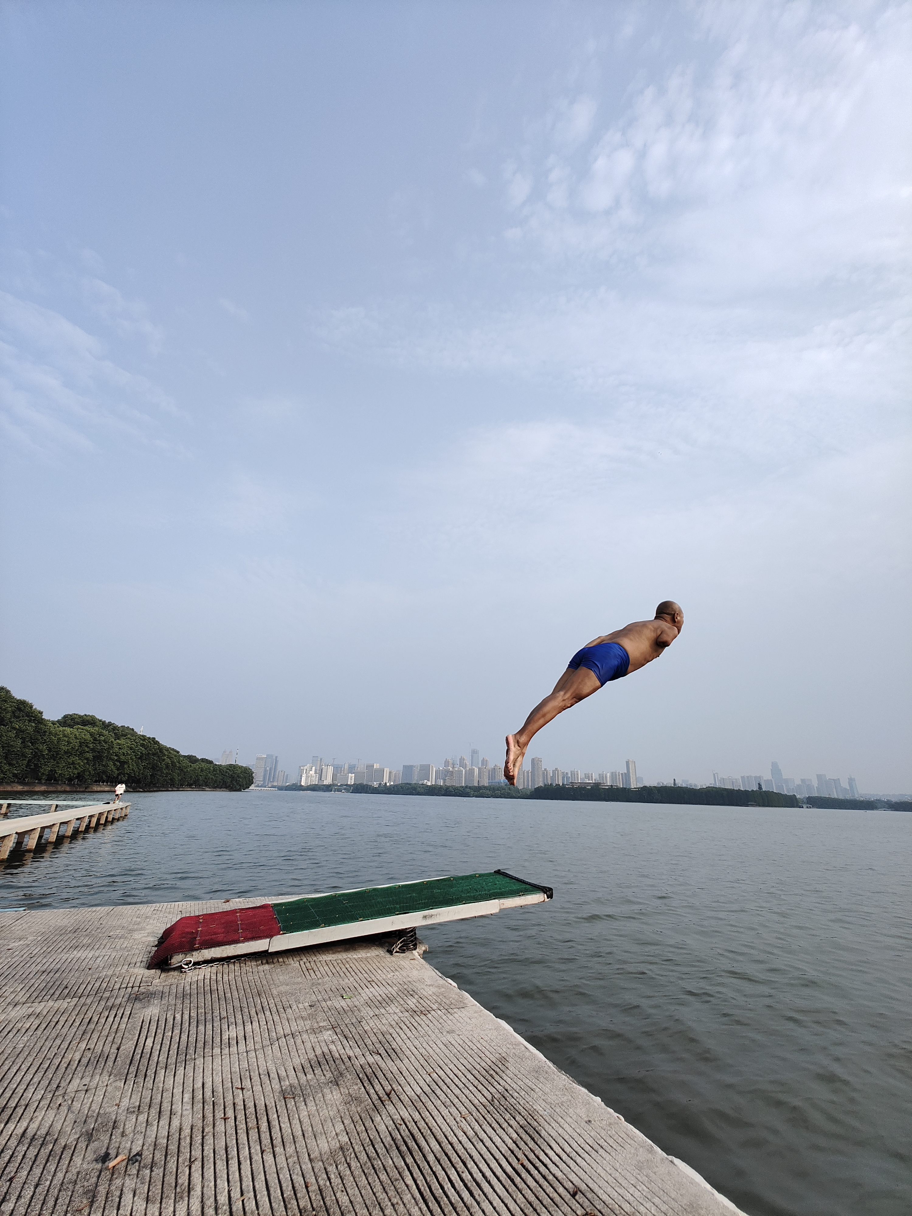 之后,“跳东湖”逐渐成了武汉夏日的经典派对,融合了跳水、音乐、美食、露营,参与规模从起初的几十人到今夏的4.92万人,参与者大多“奇装异服”,有跳舞的,有玩滑板的,有蹬小轮车的,有踩无动力水翼的,或仅仅是直直地入水,张扬、明媚、快乐。