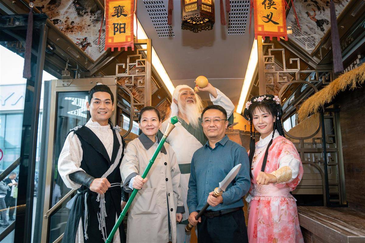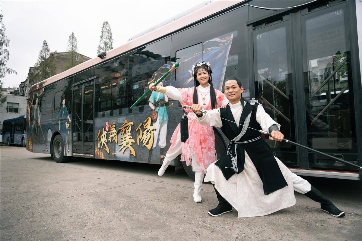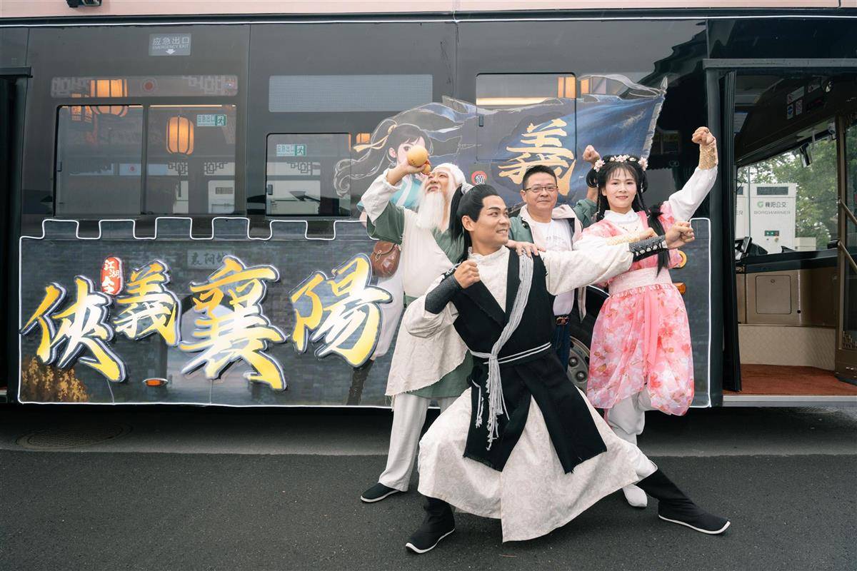 “郭靖”化身公交司机,“黄蓉”在车厢内翩翩起舞,沉浸式乘车体验让游客大呼过瘾……10月1日,“侠义襄阳”旅游公交车从襄阳新能源汽车公园驶出。该主题公交将襄阳历史文化与金庸武侠元素巧妙融合,车厢内不仅装饰有灯笼、战鼓等武侠风道具,还营造出浓厚的江湖氛围。襄阳市公交公司介绍,该公交始发站为南湖广场,途经古城十字街(管家巷)、诸葛亮广场、白马广场、吾悦广场等核心地标,终点站到吾悦广场,“十一”期间,游客可免费乘坐体验。(湖北日报全媒记者褚楠 通讯员葛铁摄)
