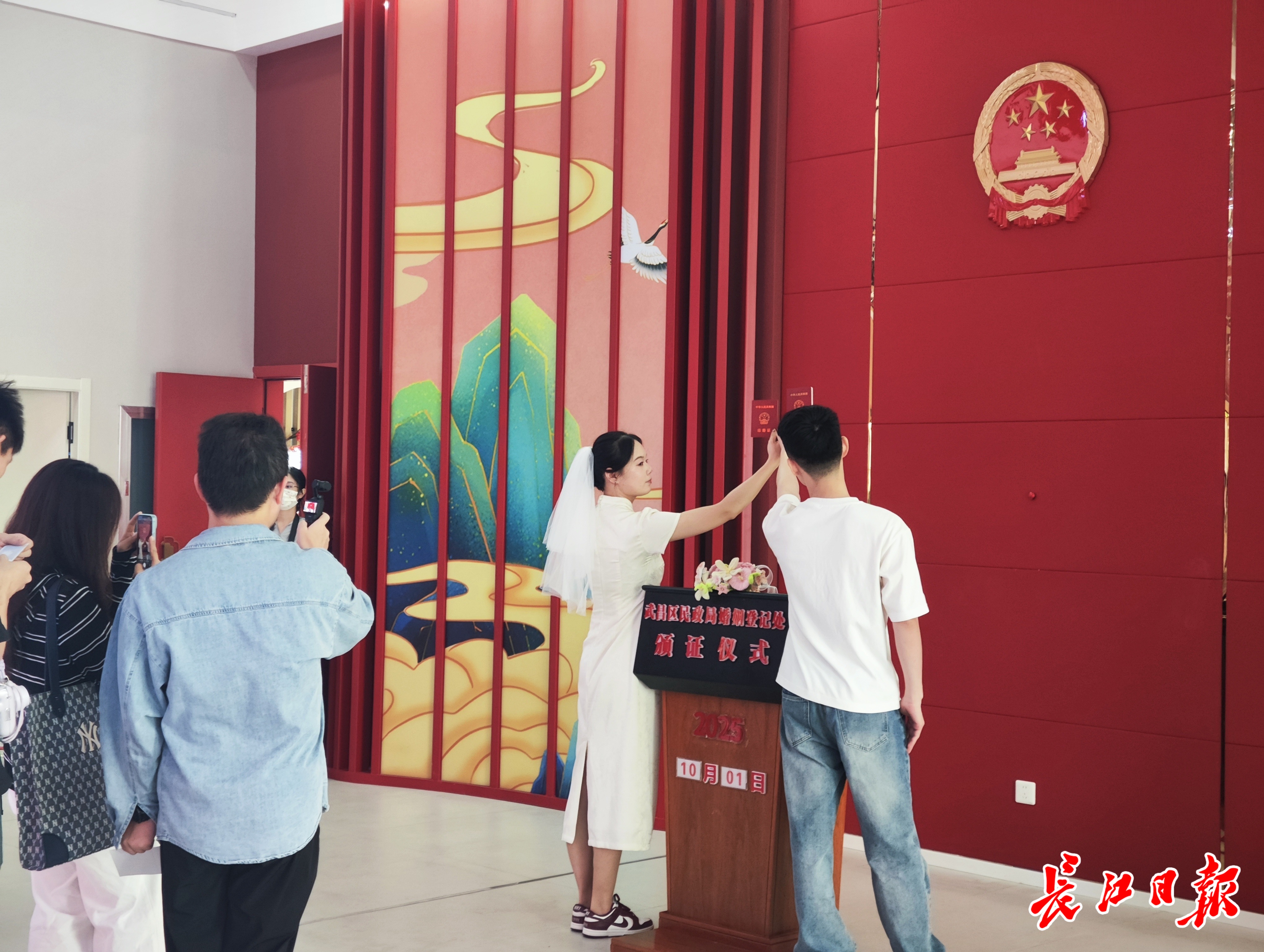 武昌区婚姻登记处工作人员也深有感触:“这几年国庆预约通道一开放,名额很快就被抢空,‘国庆’在许多新人心中已成为一个不折不扣的大日子。”