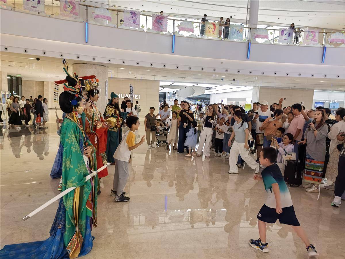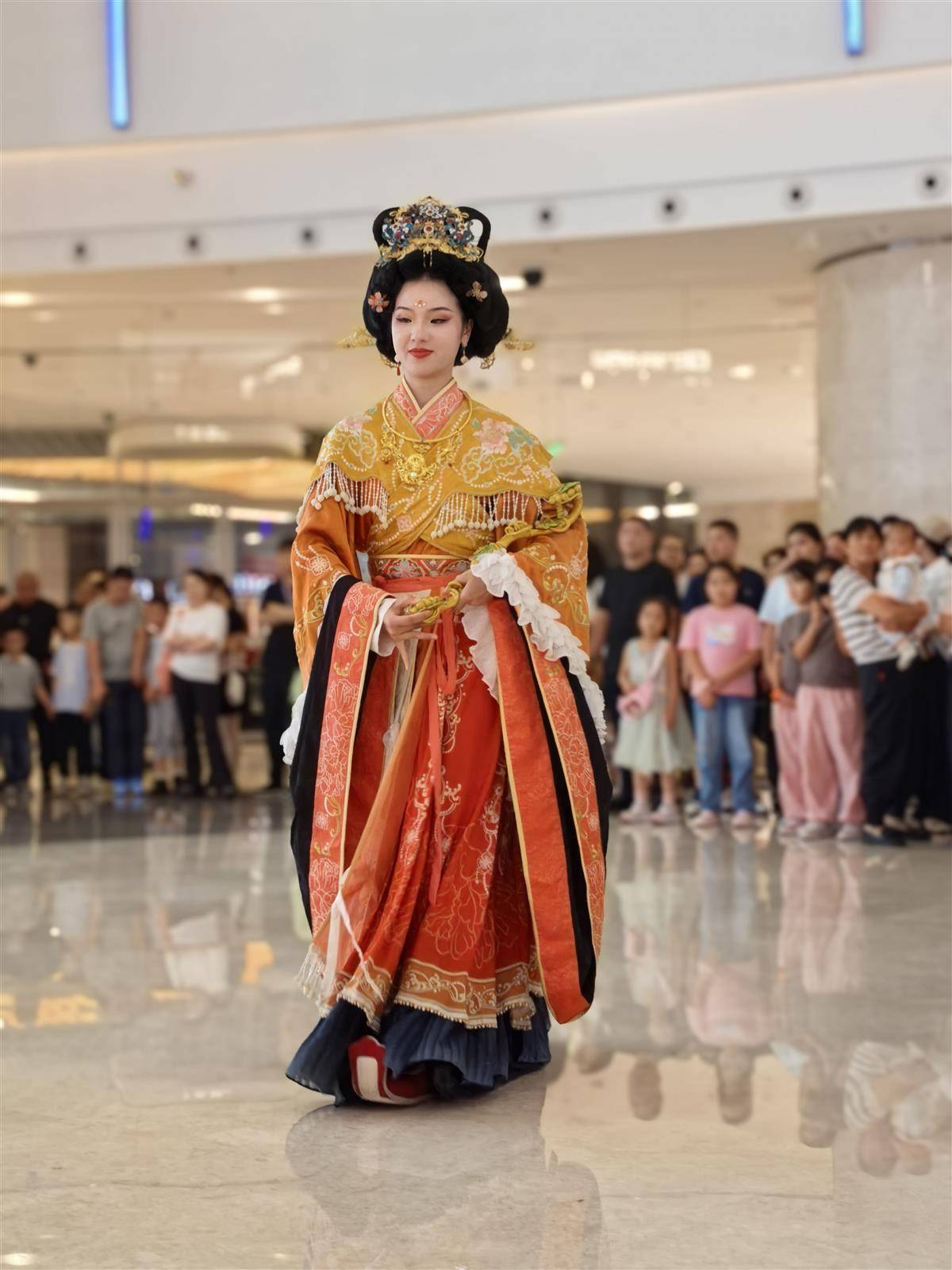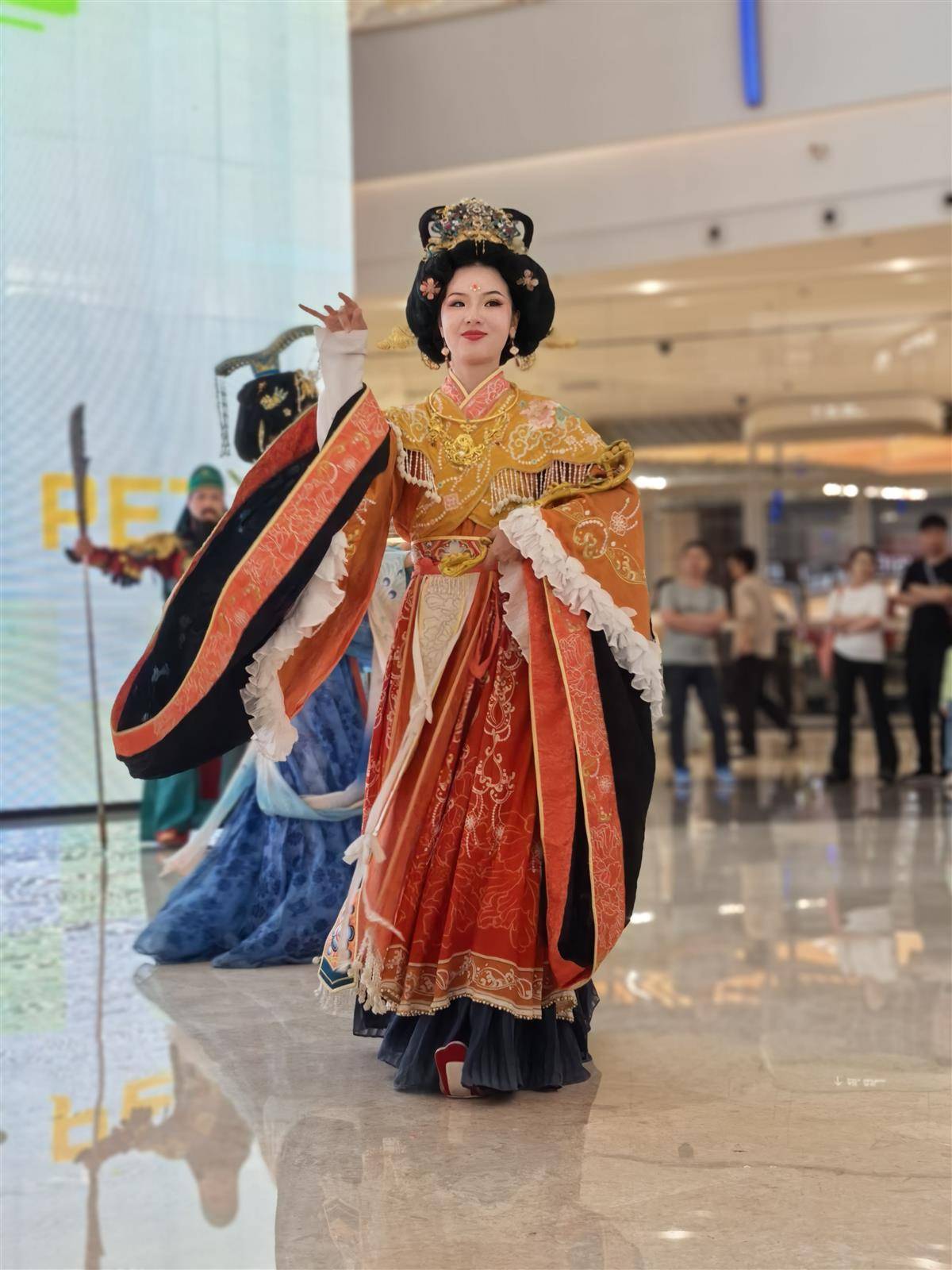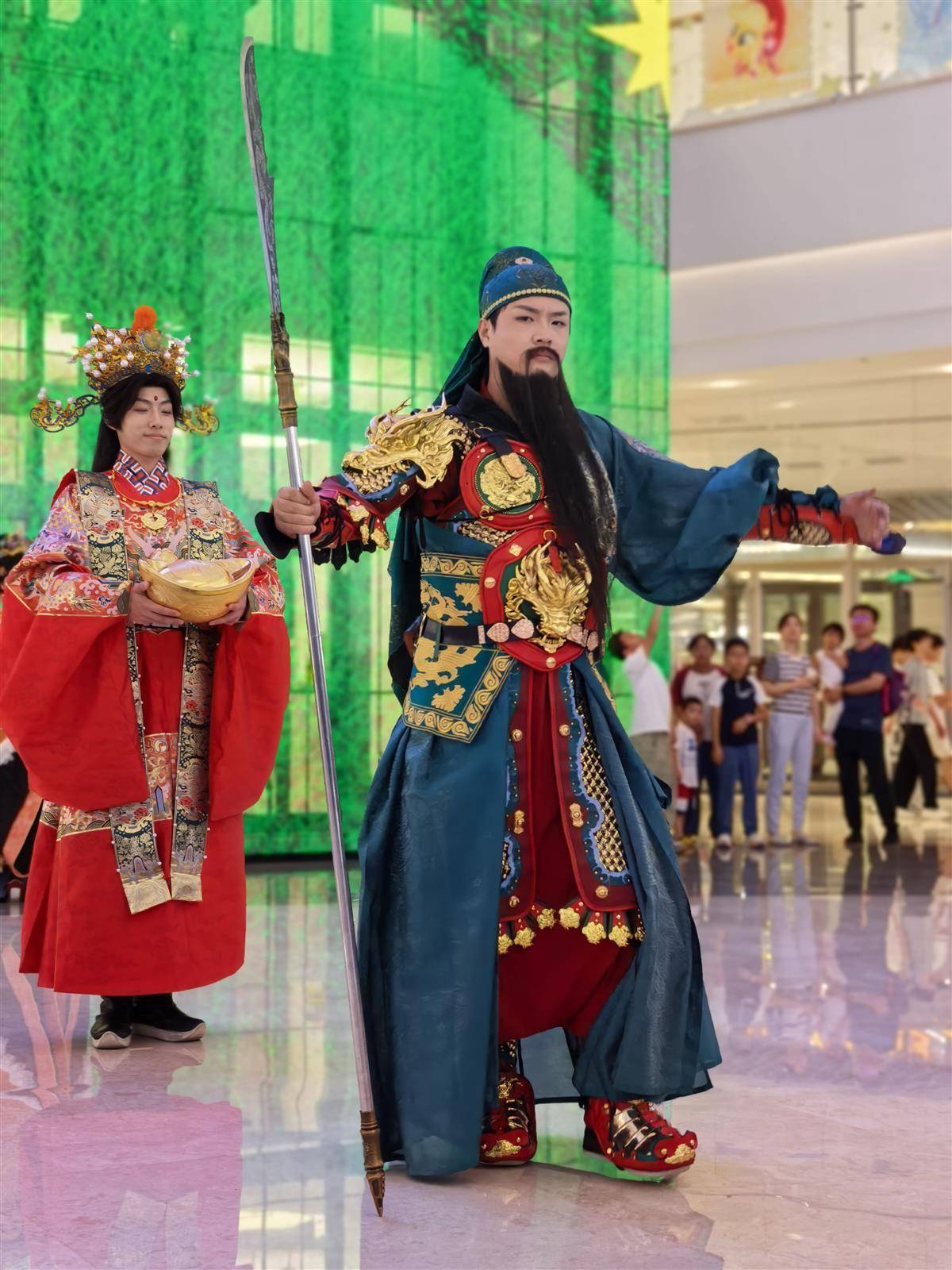10月2日晚,武汉地标性商业综合体——武商梦时代内客流如织,节日氛围浓厚。商场巧妙地将民俗文化融入现代商业场景,由工作人员扮演的“财神”、“关公”等经典形象穿梭于人群之中,与游客亲切互动、合影留念,现场欢声笑语,其乐融融的景象成为假期夜间消费市场的一抹亮色。(湖北日报全媒记者 刘曙松 摄)
