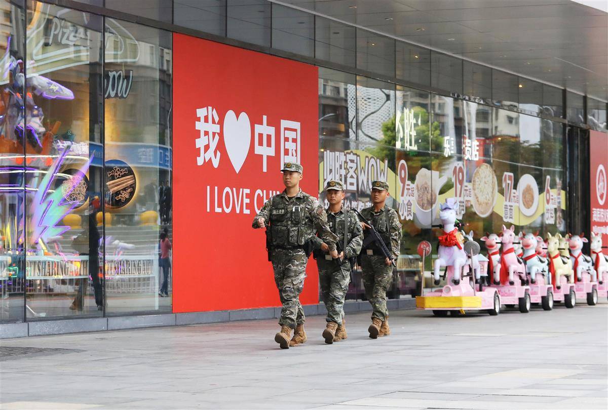 国庆中秋长假,武警湖北总队荆门支队官兵在火车站、城市重点商圈,全面加强社会面巡逻管控,为市民游客营造安全和谐的节日环境。