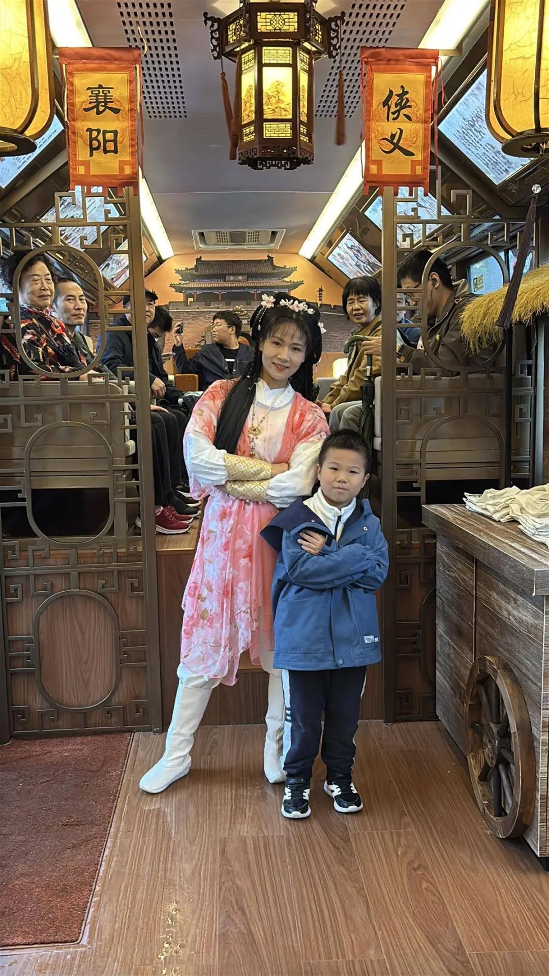 车厢内,灯笼高悬、战鼓陈列