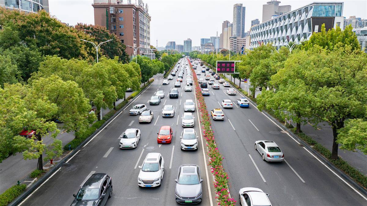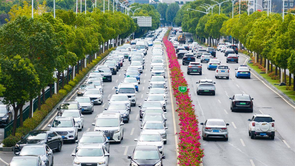 国庆假期进入出行高峰 武汉二环线上车辆一眼望不到头