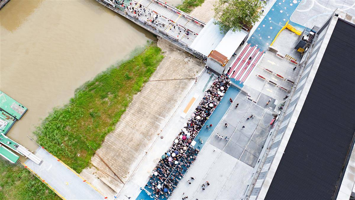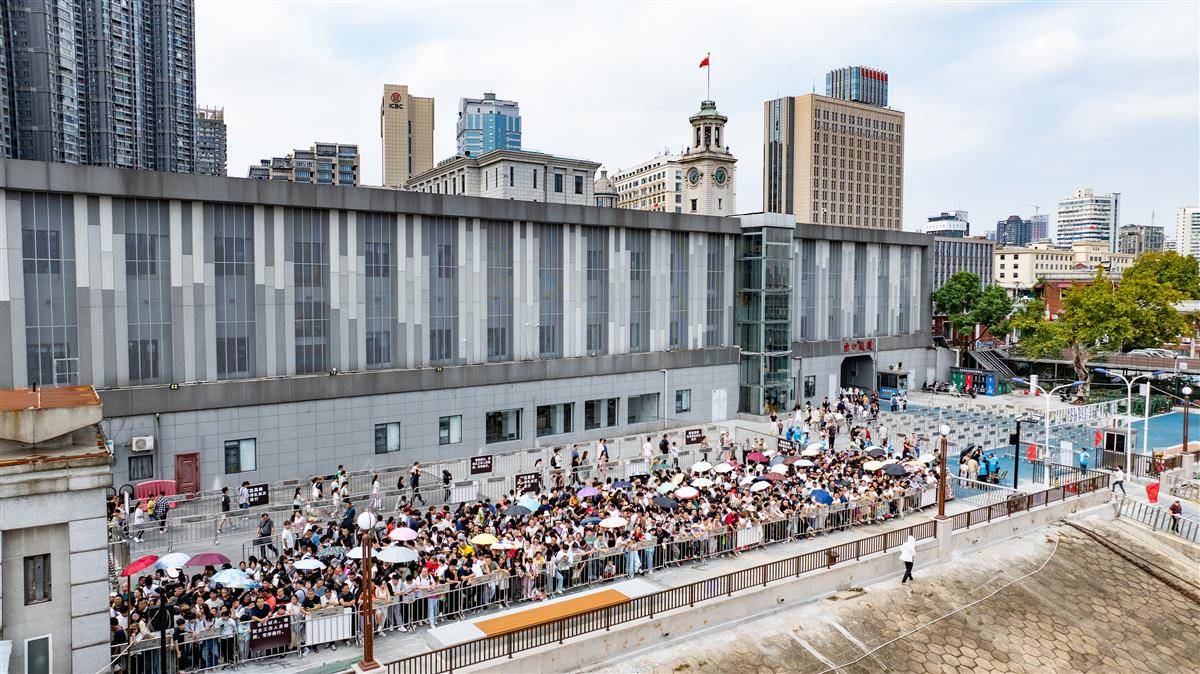 2025年10月3日,“十一”小长假第3日,在武汉关轮渡码头,大批前来体验武汉轮渡的游客排起长队等候登船,场面十分壮观。轮渡作为武汉的一种传统过江交通方式,由于价格低廉、体验感强,并且可以一睹武汉两江四岸美景,深受外地游客青睐。如今已成为外地游客来武汉的必体验项目。(湖北日报全媒记者 何宇欣 摄)