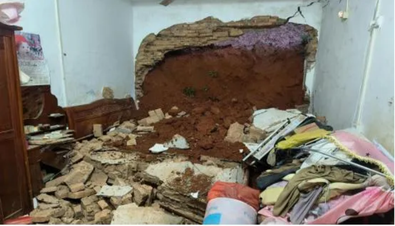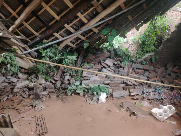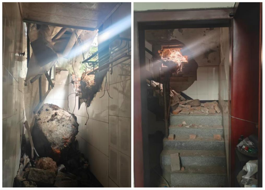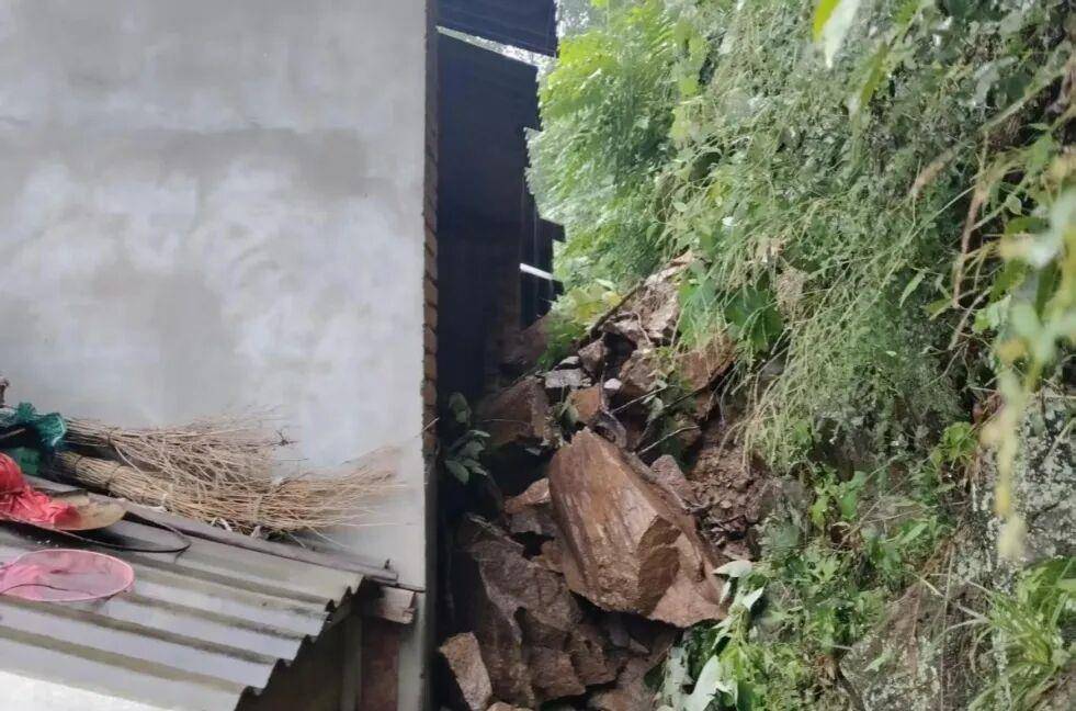 9月19日2时许,湖北省十堰市张湾区花果街道茶店村2组刘德菊屋后发生岩质崩塌,方量约30立方米。垮落的石块砸穿房屋后墙,并冲入屋内造成部分设施损毁。因当地提前转移受威胁群众,避免了1户5人可能因灾伤亡。