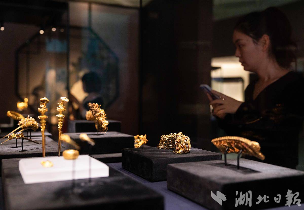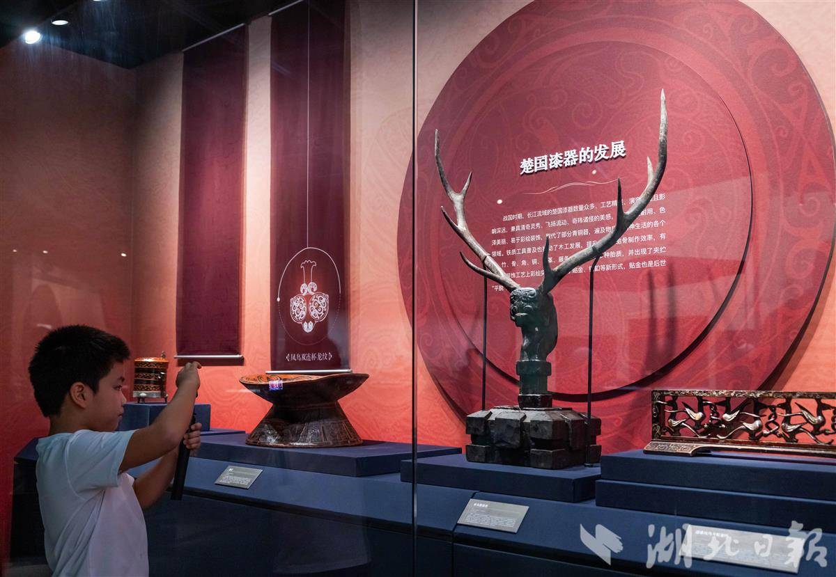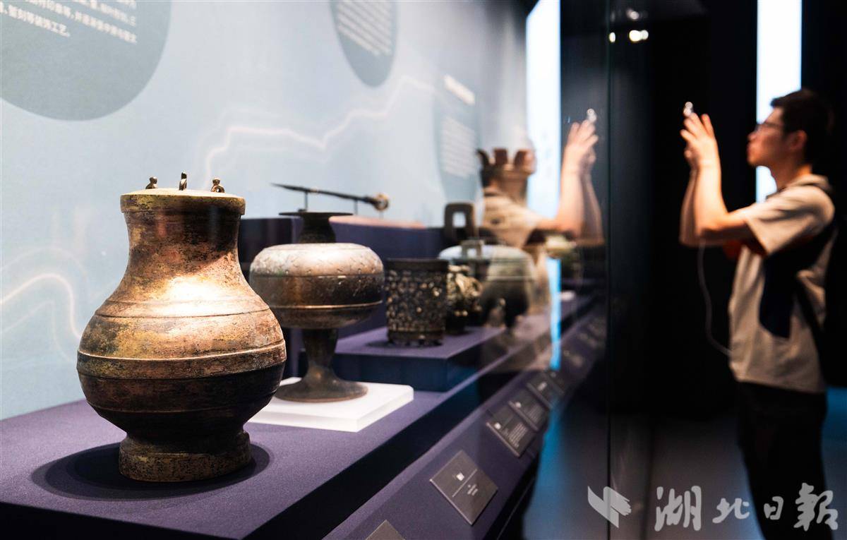 10月3日,武汉盘龙城遗址博物院,“江流万古——长江流域古代文明瑰宝展”人气火爆,众多游客参观打卡,探触长江文脉的深厚底蕴。该展览汇聚来自湖南博物院、湖北省博物馆、浙江省博物馆等37家长江流域文博单位馆藏的160件(套)文物精品。(湖北日报全媒记者 薛婷 摄)