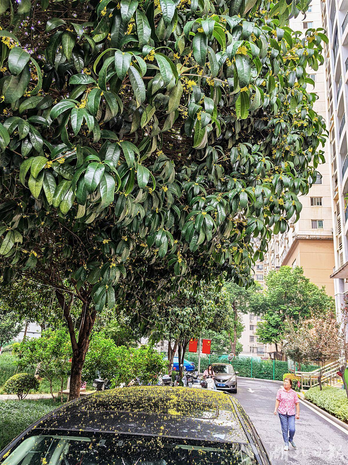 不知你是否也察觉,国庆假期这几日的风变得格外温柔,裹挟着一股蜜糖般的暖香,穿行于大街小巷。不必寻找香气的源头,抬眼望去,那百万株桂花树正缀着星星点点的金黄,悄悄散发着香香甜甜的气息。偶有淅淅沥沥的秋雨落下,停在树下的车淋了一身桂花雨,煞是浪漫。