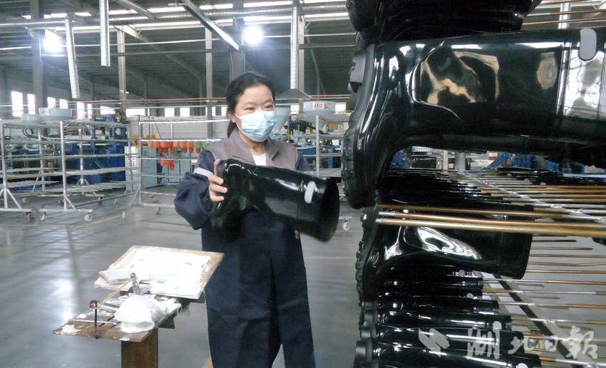 “pvc材料做成的鞋子一个是外观比较美,第二个他的防滑性能比较好,第三个没有硫化橡胶鞋的味道,在市场上很受欢迎。”湖北军盛制鞋工业有限公司总经理吴红强告诉记者。