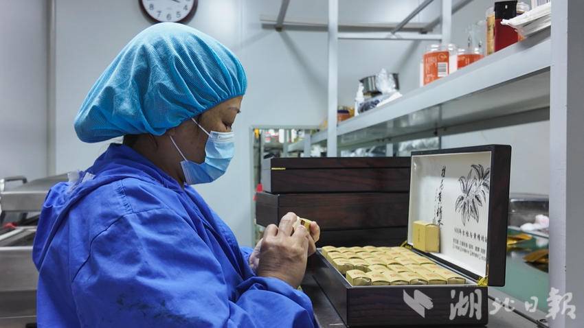 在公司的生产车间内,则是另一番忙碌的景象。新鲜黄精经清洗、分拣后,被送入现代化生产线——一部分经过“九蒸九晒”古法炮制,制成汤色澄亮、口感醇厚的黄精茶;另一部分则研磨成粉,与优质面粉、坚果等搭配,经无菌烘焙制成五仁黄精月饼,兼具养生价值与传统风味。这条生产线不仅提升了黄精附加值,还为当地提供20余个就业岗位,让村民既能在家门口卖货,又能就近务工。