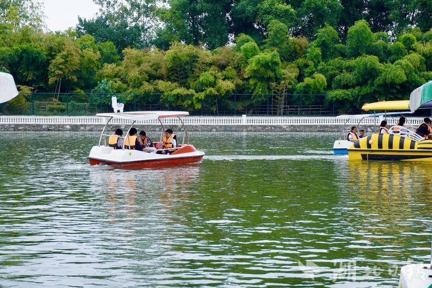 除了精彩的表演,香草伊甸园还为游客准备了丰富多样的游玩项目,满足不同人群的需求。在景区的湖边,不少游客正手持鱼竿悠闲垂钓,有的专注盯着水面等待鱼儿上钩,有的则和身边的家人朋友闲聊,享受着难得的慢时光;一旁的游船码头同样热闹,色彩鲜艳的脚踏船、电动船在湖面上缓缓行驶,游客们坐在船上欣赏湖边风光,偶尔还会和其他船只上的人打招呼,欢声笑语飘荡在湖面之上。