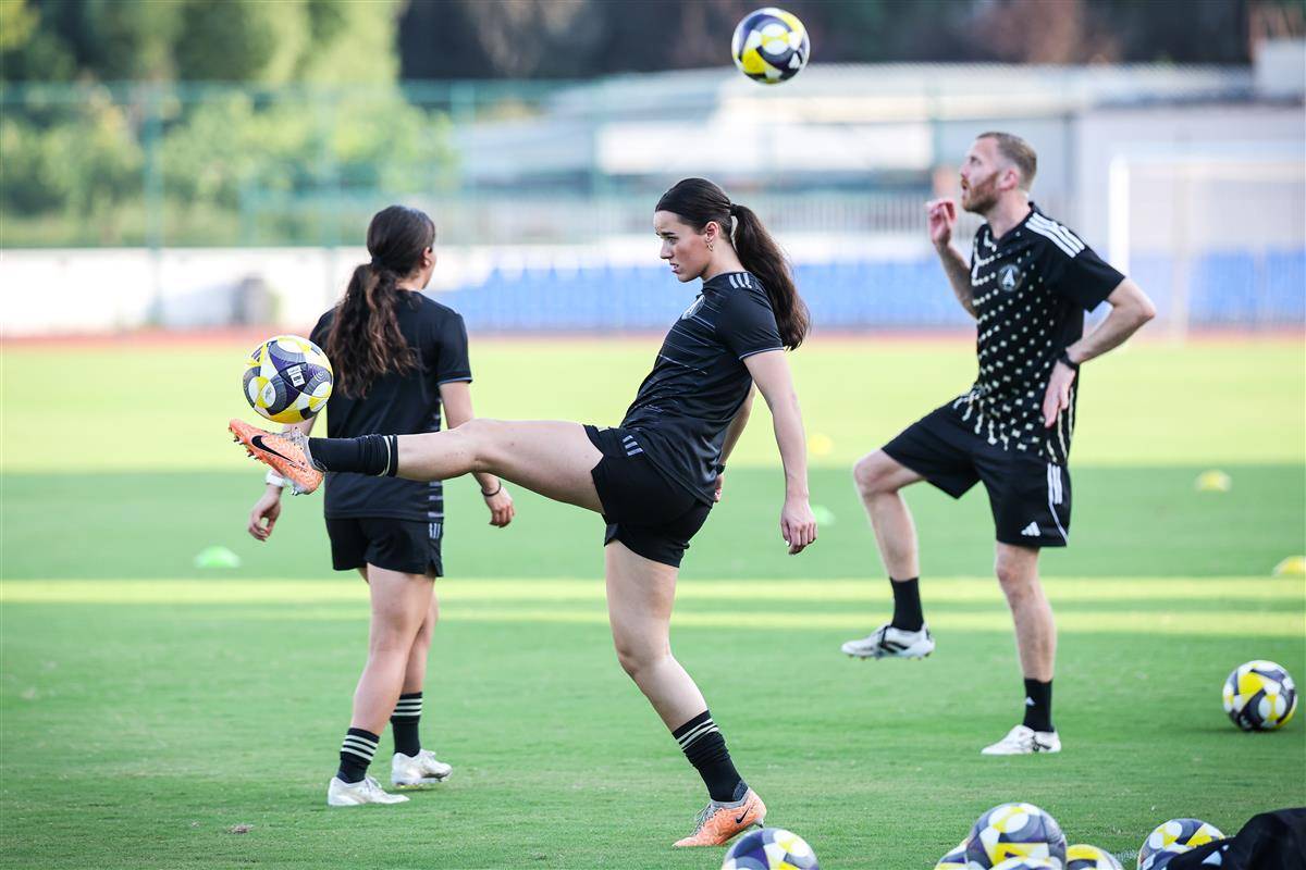 7日,期待全力以赴争取胜利的奥克兰联女足在武汉体育中心外场完成了赛前最后一练,全队上下显得非常轻松。(湖北日报全媒记者 时龚 摄)