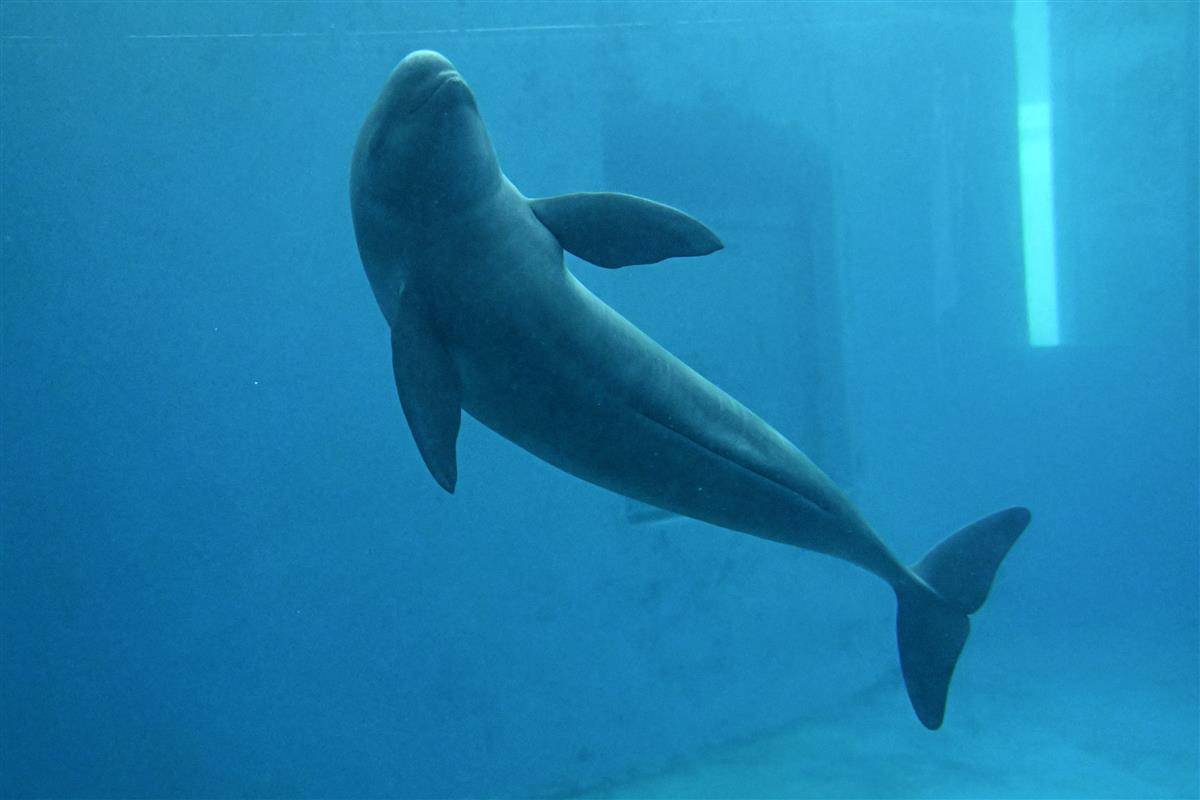 10月7日,中国科学院水生生物研究所白鱀豚馆的长江江豚。(湖北日报全媒记者 任勇 摄)