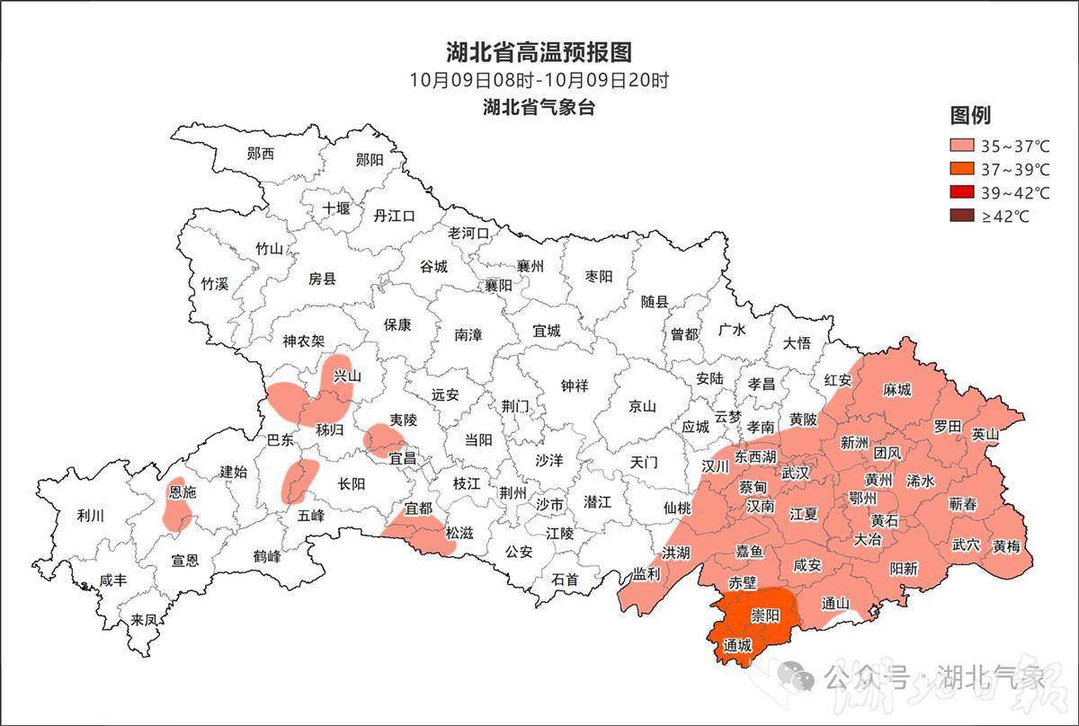 湖北日报讯(记者曾莉)10月8日迎来秋季的第五个节气——寒露,常年此时气温进入快速下降的时段,但今年在强势的副热带高压控制下,湖北天气维持晴热格局。15时13分,湖北省气象台发布高温黄色省级预警:预计9日白天,咸宁、黄石、黄冈、鄂州、武汉、孝感南部、仙桃东部、荆州、宜昌、恩施中部和北部等地最高气温将升至35℃以上,其中咸宁南部局地37℃以上。
