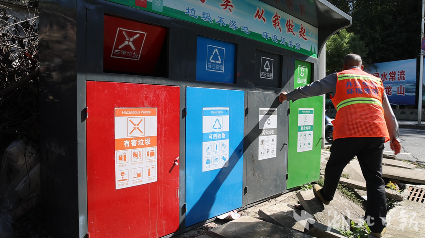 目前,丹江口市农村垃圾分类覆盖率达70%,135个村建成“六个一”设施(1户1组的分类垃圾桶,每村1个垃圾收集员、1个四分类垃圾收集车、1个积分超市、1个沤肥点、1个垃圾分拣中心),垃圾清运达到减量化、资源化、无害化目标。
