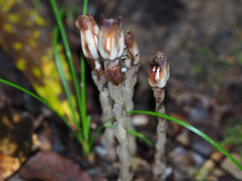 (图为在秭归两河镇深山发现的每年仅破土现身40余天的国家级近危珍稀植物水晶兰。 受访者李柳静供图)