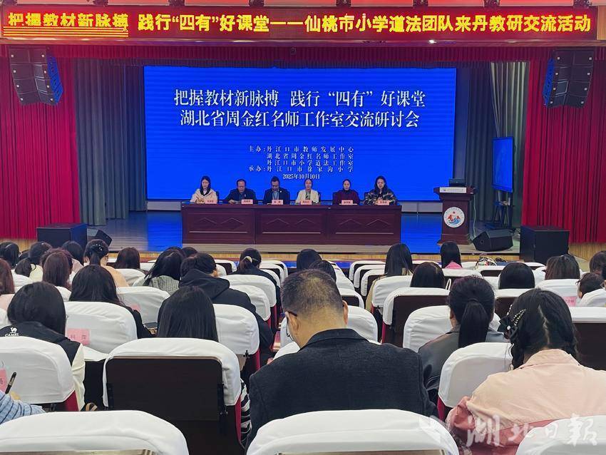 湖北日报客户端讯(通讯员 向著平 赵静)为深入贯彻立德树人根本任务,精准落实《义务教育道德与法治课程标准(2022年版)》要求,10月10日上午,丹江口市教师发展中心特邀仙桃市小学道法团队,于徐家沟小学校本部求真堂开展专题教研交流活动。丹江口市小学道德与法治工作室全体成员、城区及部分乡镇专兼职道法教师参与此次活动,共同聚焦“把握教材新脉搏 践行‘四有’好课堂”主题,探索低年段思政教学新方法。