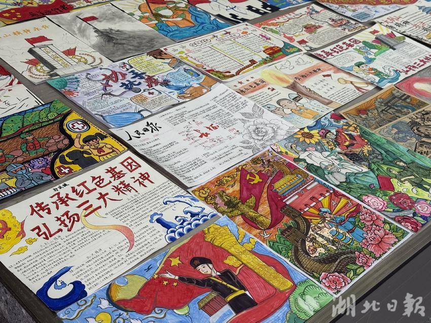 征文书画阶段将活动推向高潮,学生们热情参与,通过书法、绘画、手抄报等生动形式,记录所思所感,讲述成长故事,展现对“三大精神”的理解与传承。一幅幅作品主题鲜明、情感真挚,充分展现了新时代青少年积极向上的精神风貌与责任担当。