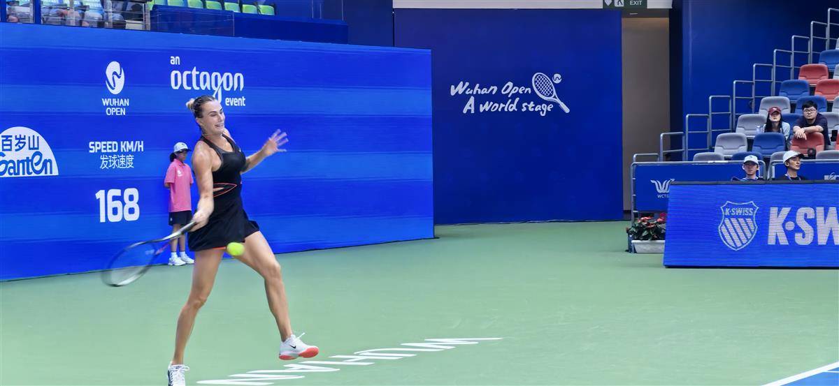 10月10日下午,在武汉网球公开赛1/4决赛焦点战中,卫冕冠军、头号种子萨巴伦卡以6-3/6-3击败8号种子莱巴金娜,豪取武网20连胜,强势晋级四强。在明日进行的半决赛中,萨巴伦卡将迎战6号种子佩古拉。(湖北日报全媒记者 蔡毅 通讯员 古月)
