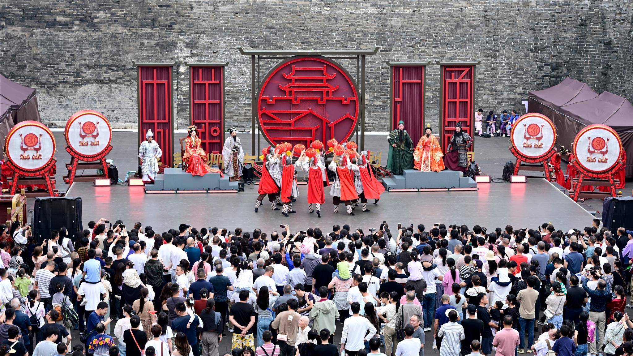 旅游市场的火爆,源于“文化+科技+演绎”的深度融合创新。在东门,无人机表演时而变作楚凤翱翔,时而化作《橘颂》诗句;大北门的光影秀在城墙上演绎“桃园结义”;护城河上的《九歌梦华录》让游客随“屈原”乘船游河。