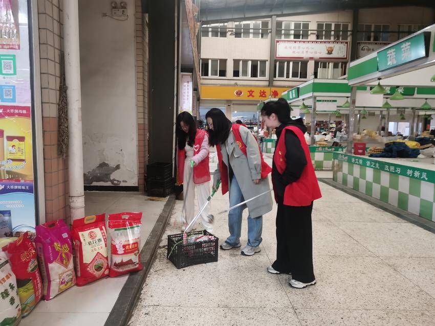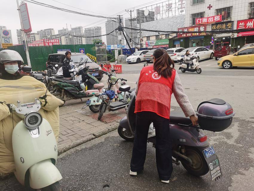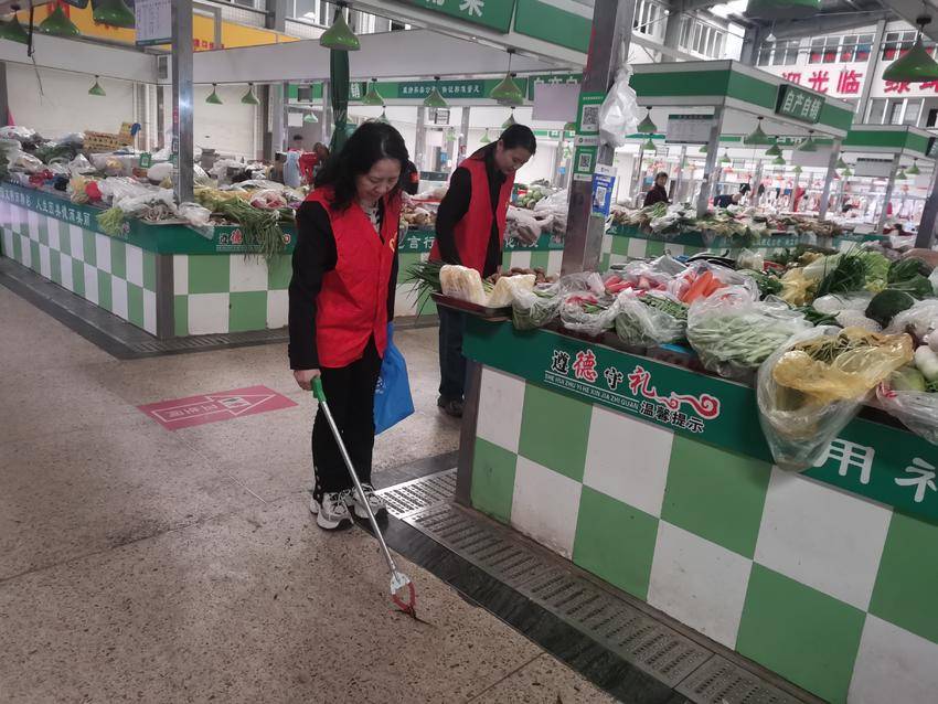 活动中,“志愿红”身影活跃在市场各个角落。志愿者们分为两组协作推进:一组手持垃圾夹、垃圾袋,对市场通道、摊位间隙内的白色垃圾、烟头、果皮等杂物进行“拉网式”清理,细致清理卫生死角;另一组则针对市场内电动车、自行车、三轮车等乱停乱放问题,逐一对占道车辆进行规整,引导商户、居民按划线区域有序停放,并提醒大家自觉维护停车秩序。