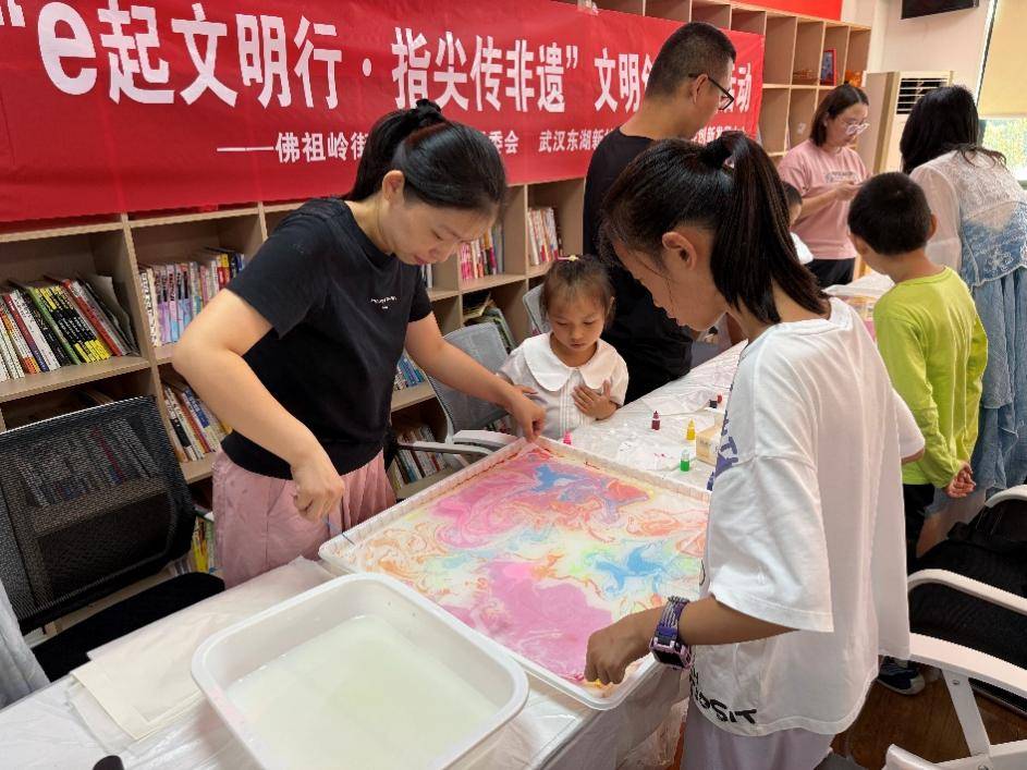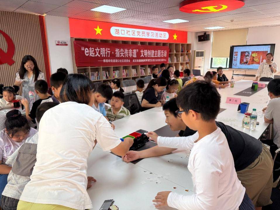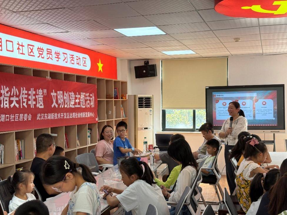 湖北日报讯(通讯员张托宇、顾兴惠)10月8日,武汉市东湖高新区佛祖岭街道湖口社区联合武汉东湖新技术开发区达观社会创新发展中心,共同举办“e起文明行·指尖传非遗”文明创建系列活动,社区30组亲子家庭在趣味体验中传递文明新风,深化社区文明实践,弘扬传统文化与现代文明理念。