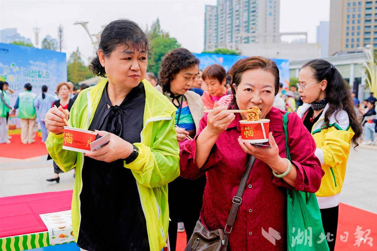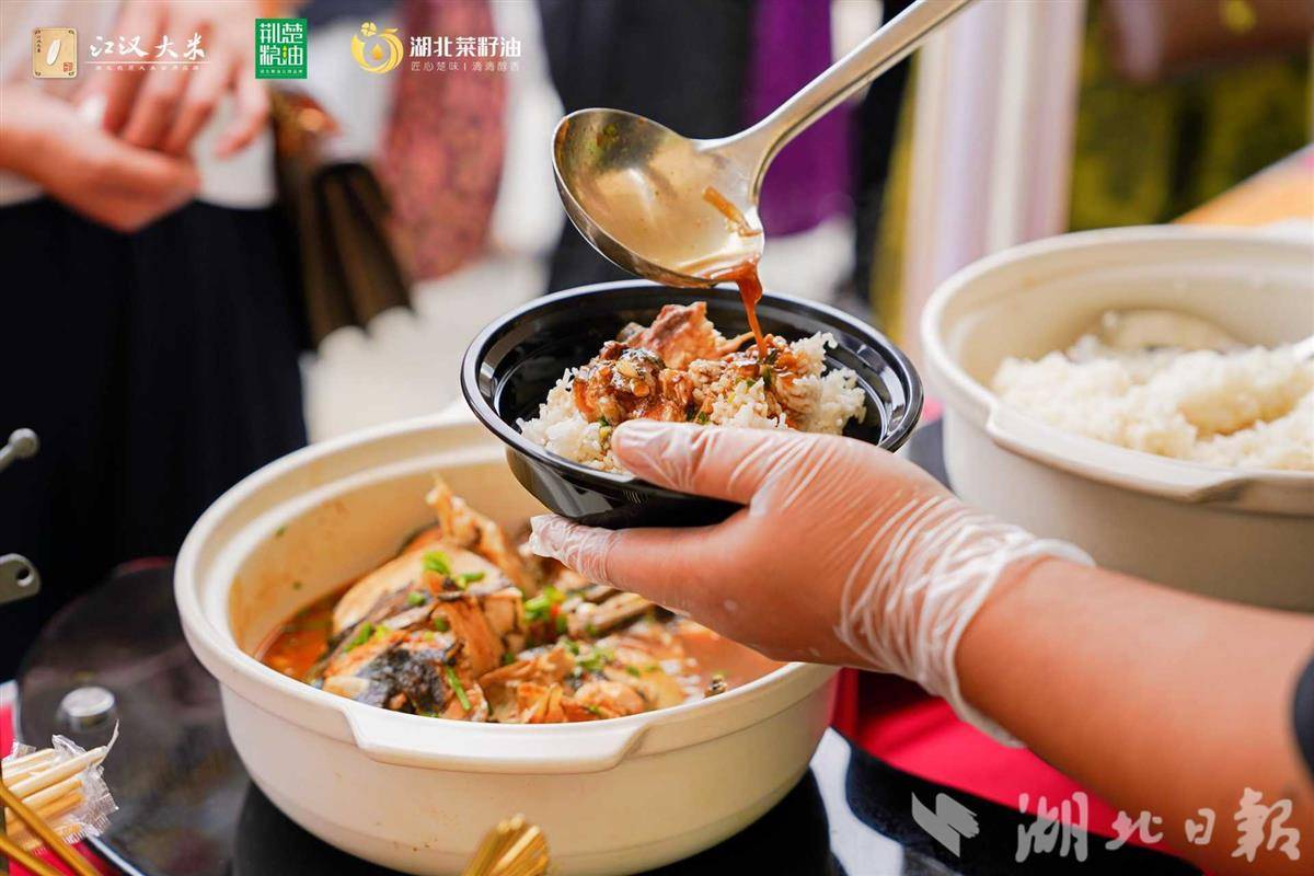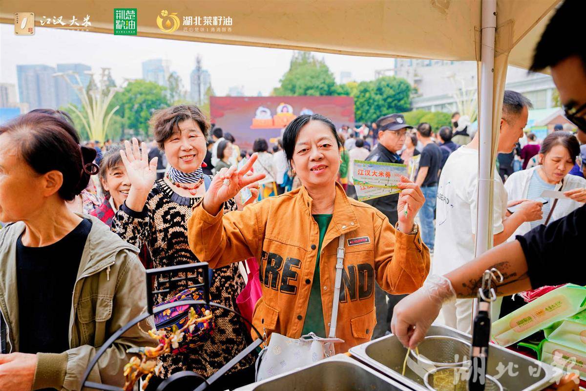 当天,武汉汉口西北湖广场成为“荆楚粮油”主题乐园。市民们排起长龙,等待品尝刚出锅的江汉大米饭、现场煎炸的湖北菜籽油美食,以及现做的热干面、面窝等湖北特色小吃。“这米饭真香!嚼着有回甘。”一位市民在品尝江汉大米后称赞道。在菜籽油煎炸区,一位阿姨表示:“用这个油炒菜没有呛人的烟味,还带着淡淡的菜籽香,炒出来的菜颜色特别亮。”