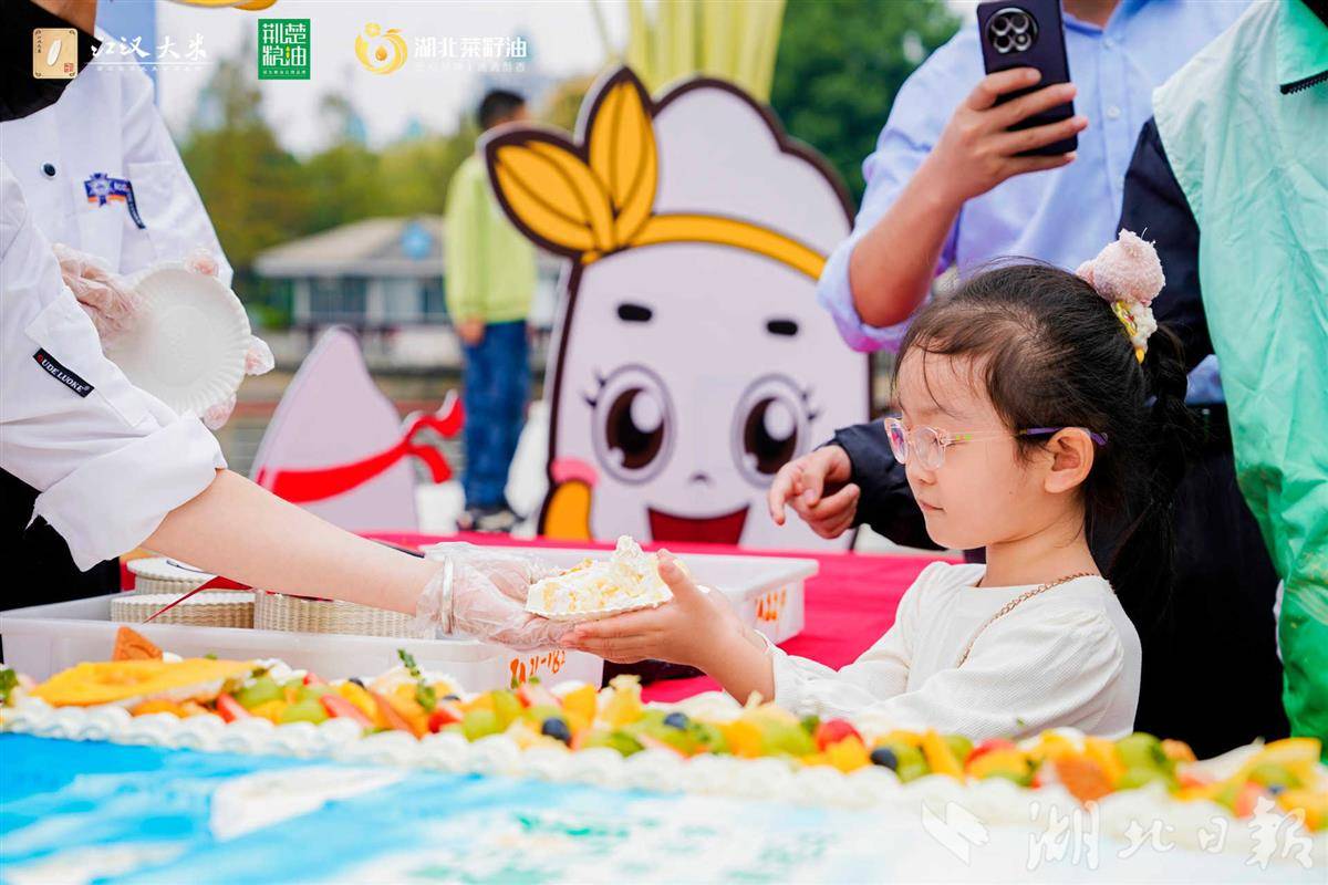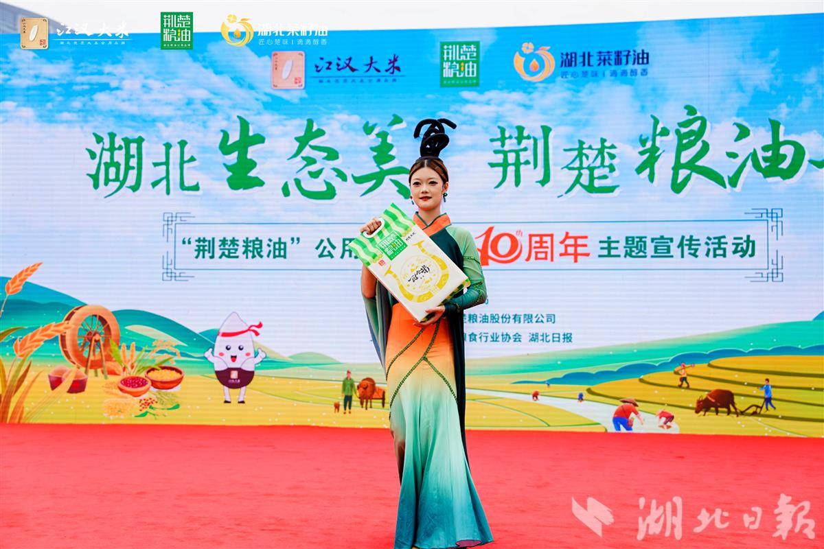 10月12日,“荆楚粮油”省域公用品牌创建十周年主题惠民活动在武汉举行,数千市民闻香而来,品米、尝面、鉴好油,用舌尖感受湖北粮油的十年蜕变。特制的主题大蛋糕亮相主舞台,将现场气氛推向高潮,嘉宾和市民代表一起执刀切蛋糕,共享欢庆时刻。