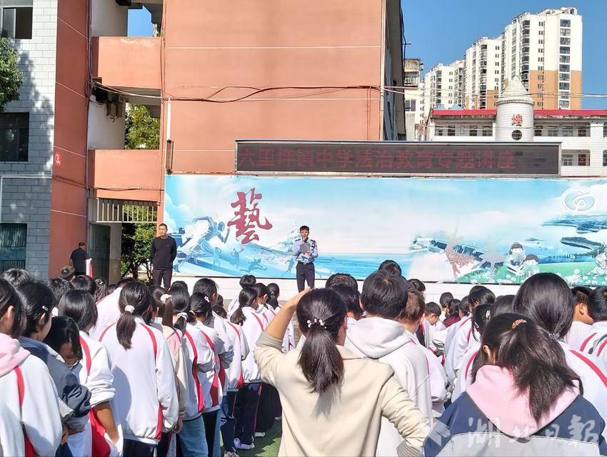 湖北日报客户端讯(通讯员 高洋 陈真伟)近日,丹江口市六里坪派出所民警黄开雨走进六里坪镇中学开展法治安全教育课,围绕“防电信诈骗与防止打架斗殴”话题,为全校学生送上一堂生动的“安全必修课”。