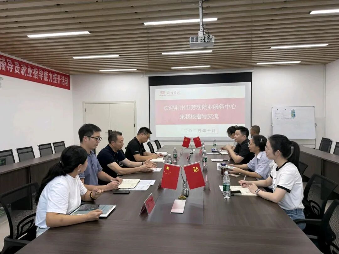湖北日报客户端讯 10月9日,荆州市劳动就业服务中心主要负责人来到荆州学院,就大学生就业与校园招聘等工作开展调研指导。双方围绕促进毕业生高质量充分就业等议题进行了深入交流,并就进一步深化政校合作达成共识。