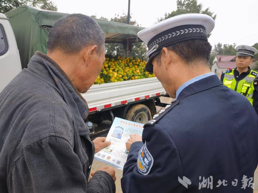 “师傅,今年收成挺好啊,车子装这么满。”“骑这个三轮摩托车,一定要戴好头盔啊,果园路弯多面窄开慢点。”在柑桔销售场所,民警们拿着一沓宣传资料,趁着果农将柑橘往三轮车装货时唠起嗑来,民警结合历年来道路交通事故等典型案例开展广泛宣传和警示,提高驾驶员和柑农柑企对交通违法行为的认知度、知晓率。通过与收购商贩、农户“零距离”接触、“面对面”沟通、“心贴心”交流,适时宣传交通安全知识,讲解在公路上占道摆卖、超载收购销售的危害性,提高群众交通安全意识和自我防护能力。