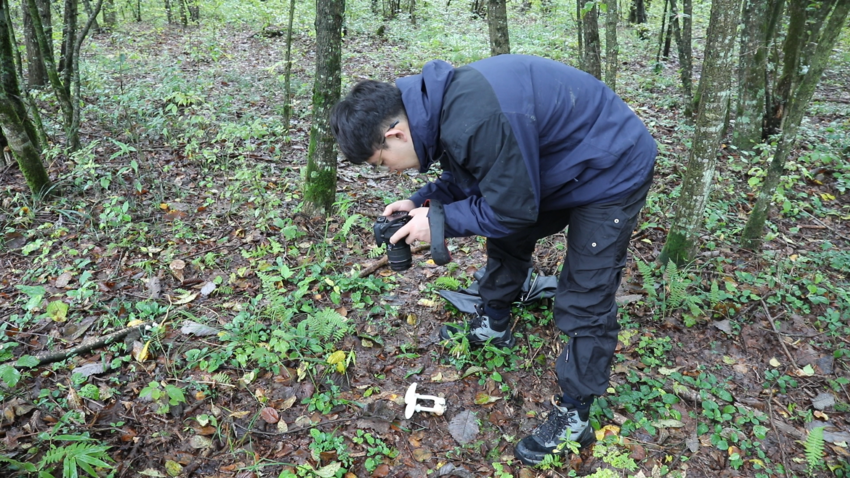 “在野外寻找蘑菇,是一项极其考验耐心与细致度的工作。不同种类的真菌对生长环境要求各异,有的偏好生长在树根周边,有的则隐匿于腐叶之下,不易被发现。”杨文强介绍,抵达预先划定的调查区域后,团队成员会分散行动,对每一寸土地进行细致搜寻。
