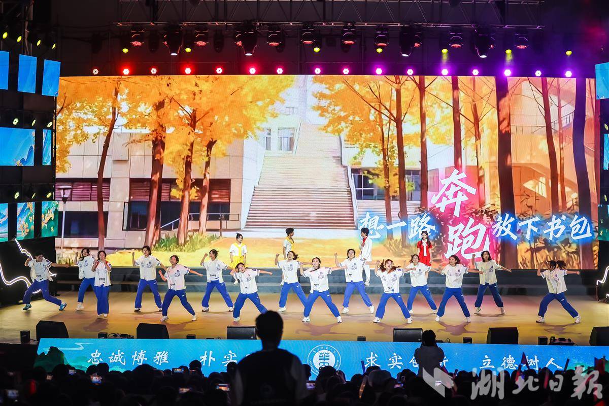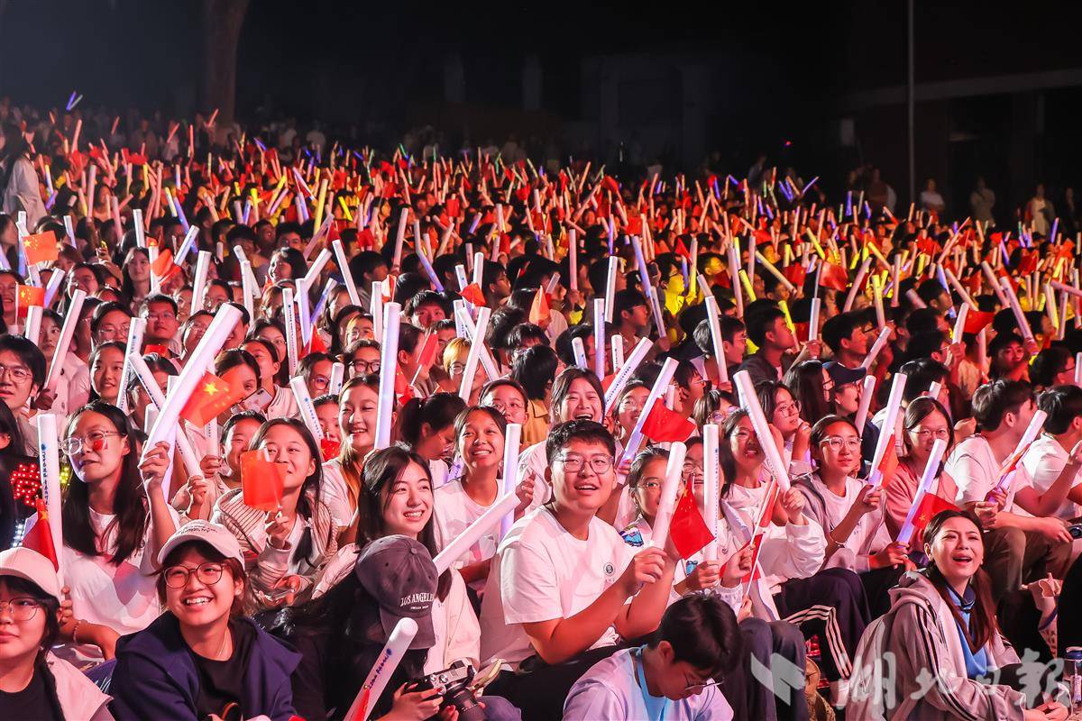 湖北日报讯(记者韩晓玲、通讯员党波涛、卢俊霖、陈希昌)10月12日晚,华中师范大学2025年迎新晚会在该校露天电影场举行。晚会深度融合校史资源与红色文化,带来多个原创作品,为新生们呈现了一堂沉浸式美育思政课。全场新生挥舞荧光棒,形成一片动人的荧光灯海。