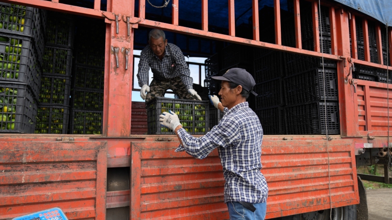 从江苏常州过来采购的车辆就停在果园边,柑橘从树上采摘后直接装车运走,抢的就是一个“鲜”。江苏常州客商李宪其说:“我在这收购已经收了6、7年了,这个橘子好吃,口感好。”