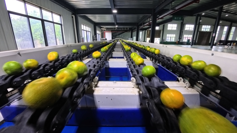 当阳市是国家确定的“长江上中游优势柑橘产业带”核心区,带动了2.8万名果农发展柑橘产业。为提升产销效率,新投入的大型智能化分拣设备实现了柑橘清洗、分拣、装筐全程机械化。