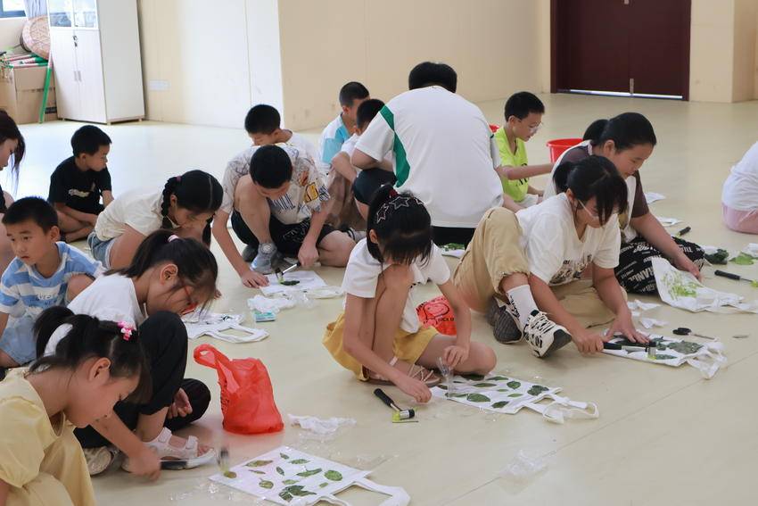 “漆扇制作”课上,孩子们亲手制作出一把把独具特色的漆扇,领略传统工艺的魅力;“植物拓染”活动中,大自然的花草树叶在孩子们手中变成绚丽的画作;“纸杯投影”小实验,让孩子们在游戏中学习科学原理。这些创意课程不仅解决了农忙时节家长无暇照顾孩子的后顾之忧,更激发了孩子们的创造力和想象力,为他们打开了探索世界的新窗口。