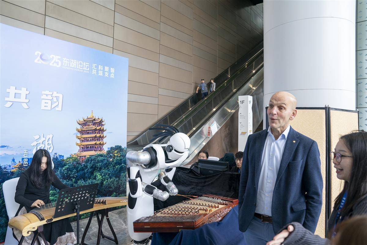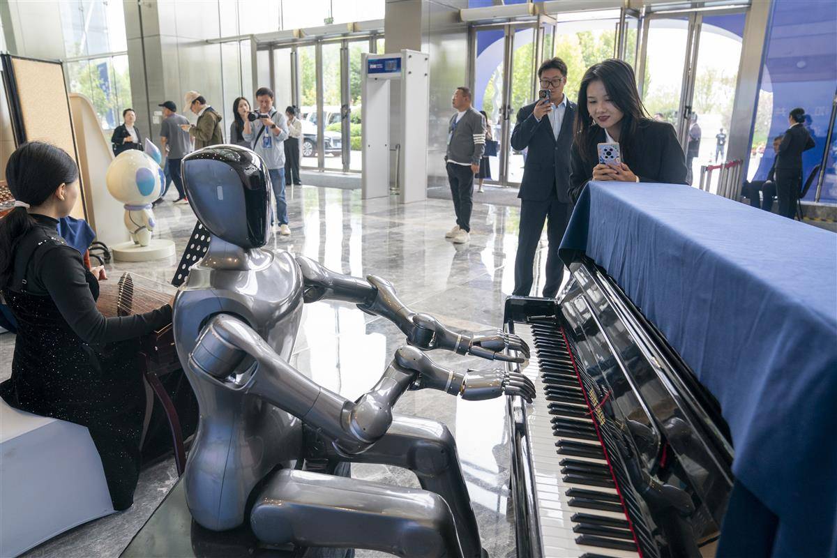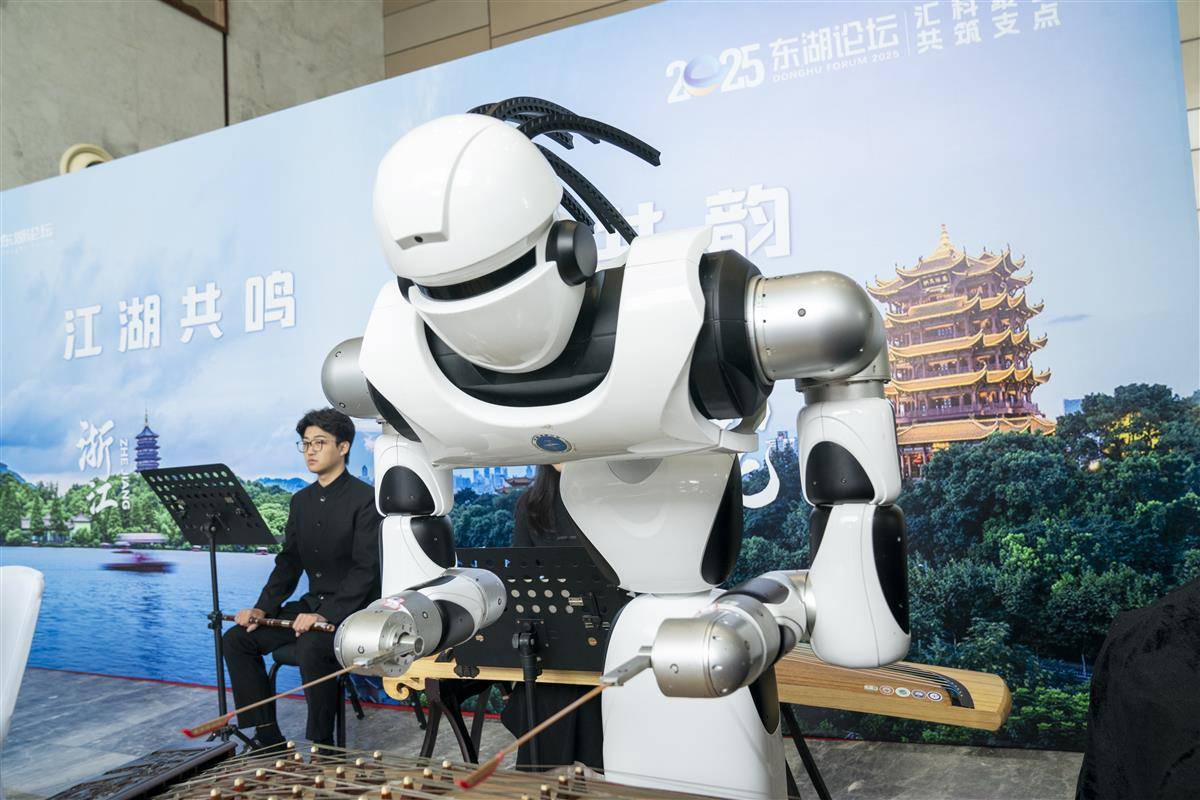 论坛会场外,人形机器人现场演奏《高山流水》