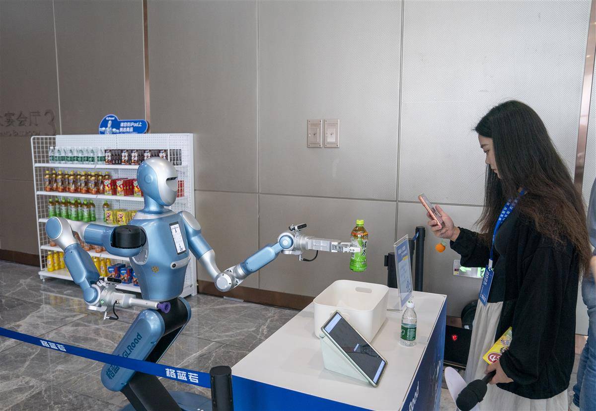 论坛会场外的机器人小卖部吸引观众体验互动消费